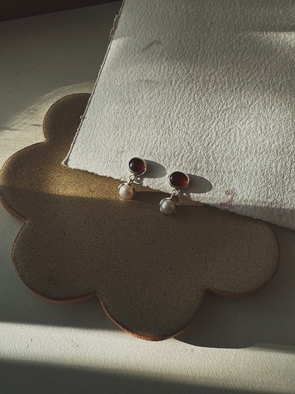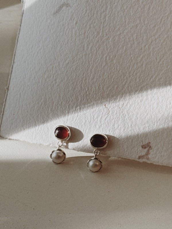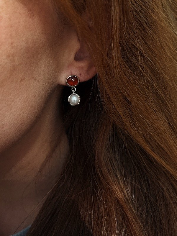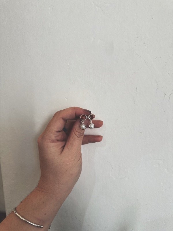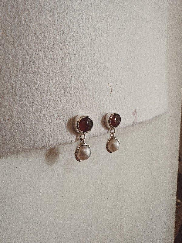 Realizados íntegramente a mano en plata con un engarce de virola con dos vasonitas y dos perlas naturales que cuelgan con movimiento.