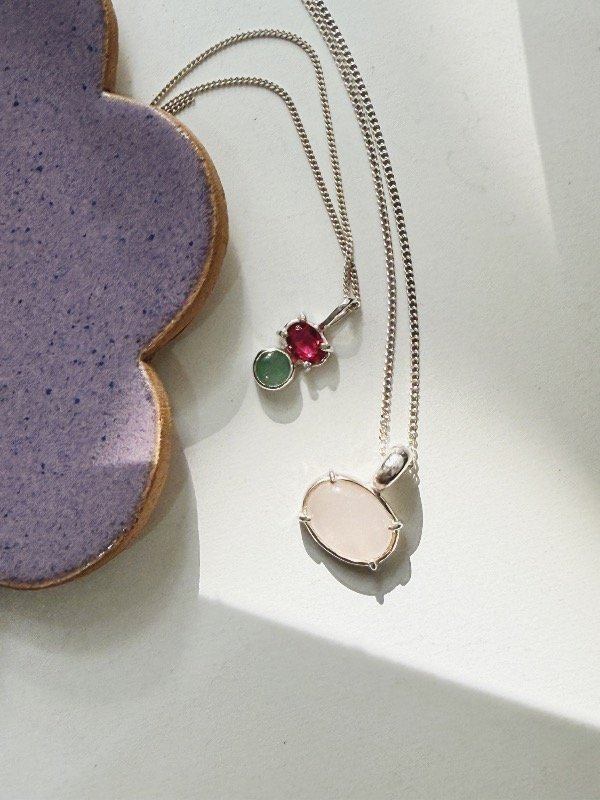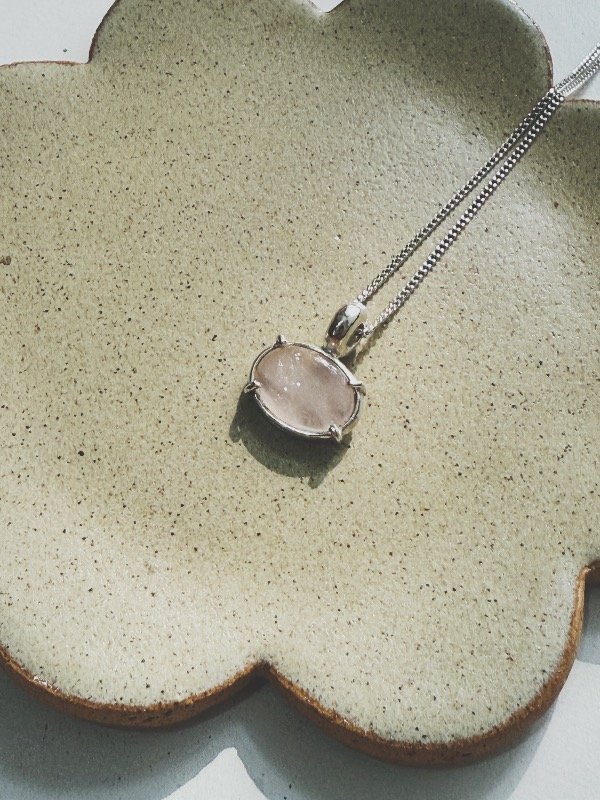 Collar único con cuarzo rosado.