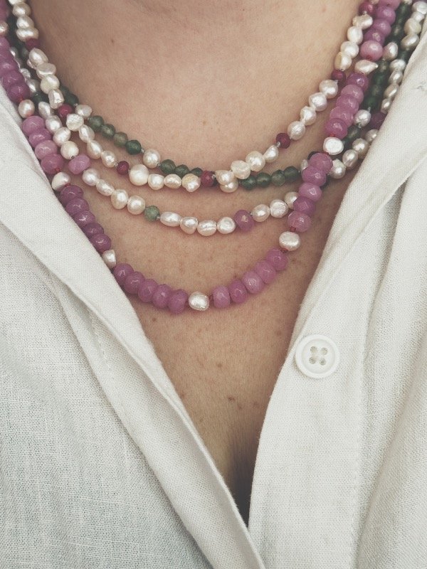 Cuidados: Todas mis joyas están hechas para que las disfrutes pero teniendo algunos recaudos, tu pieza perdurará en el tiempo. Los enhebrados son con hilo, de manera tradicional con entre nudos. Evitá bañarte con el collar puesto. De esta manera cuidamos el hilo y las perlas naturales.